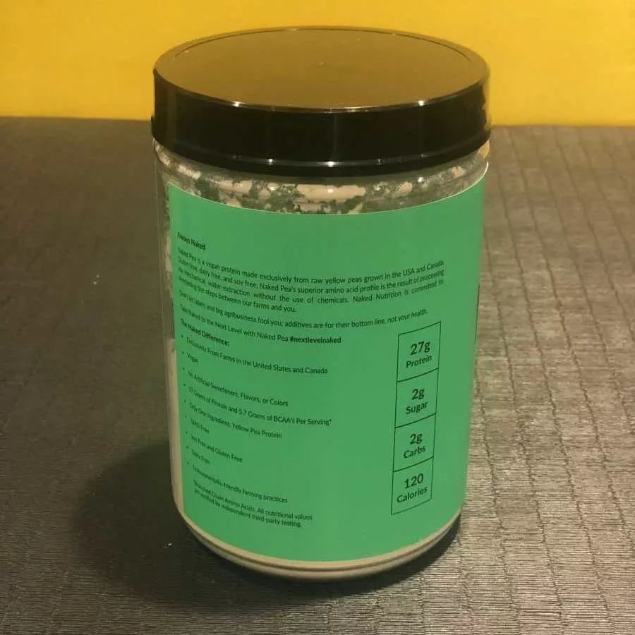 Naked Nutrition’s is 100% Pea Protein. What is unique about Naked Nutrition’s Pea Protein is that it is Pea Protein and nothing else. It contains no artificial colors or flavors. Since it contains no artificial or added flavors, it pretty much tastes like nothing. That could be good or bad based on your perspective. If you are cutting for a bodybuilding show or competition it’s great. Naked Nutrition left it up to the consumer to add flavoring as needed (Paul likes to add chocolate powder. I take mine straight up with my Green’s+ Powder.)